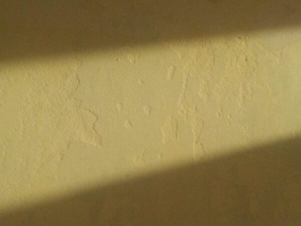 The problem walls featured in the example were caused mainly by the removal of wallpaper on previously painted walls – the paint was brought off in numerous places leaving that patchy uneven surface.